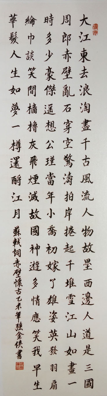 强金侠,男,74岁,生于安徽省太和县“国家书画之乡”。自幼喜爱书法,一生从事教育工作。现为:太和县书画研究会会员、太和县书法家协会会员、阜阳市书法家协会会员、中国书画协会理事。作品多次在省市级书画大赛中获奖。