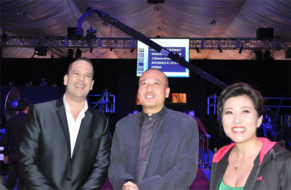 崔自默先生与《钢铁侠3》总制片人丹-密茨(左)、DMG总裁吴冰(右)