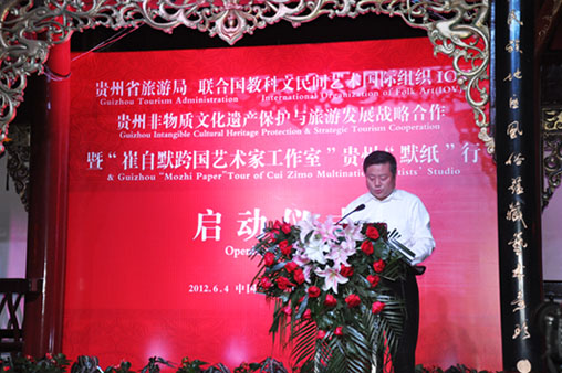 2012年6月4日,贵州省旅游局与联合国教科文民间艺术组织IOV“贵州非物质文化遗产保护与旅游发展战略合作”,暨“崔自默跨国艺术家工作室”贵州“默纸”行启动仪式在贵州省博物馆正式启动,贵州省旅游局傅迎春局长出席启动仪式,贵州省旅游局聘授中国书画协会主席崔自默先生为贵州旅游文化传播大使,颁发证书。启动仪式结束后,傅迎春局长陪同“崔自默跨国艺术家工作室”一行参观贵州省博物馆。