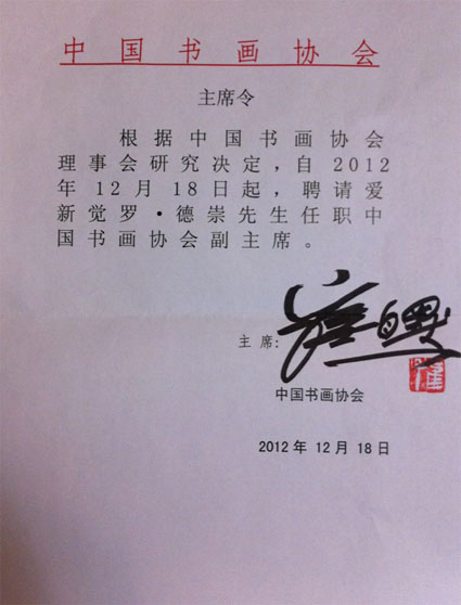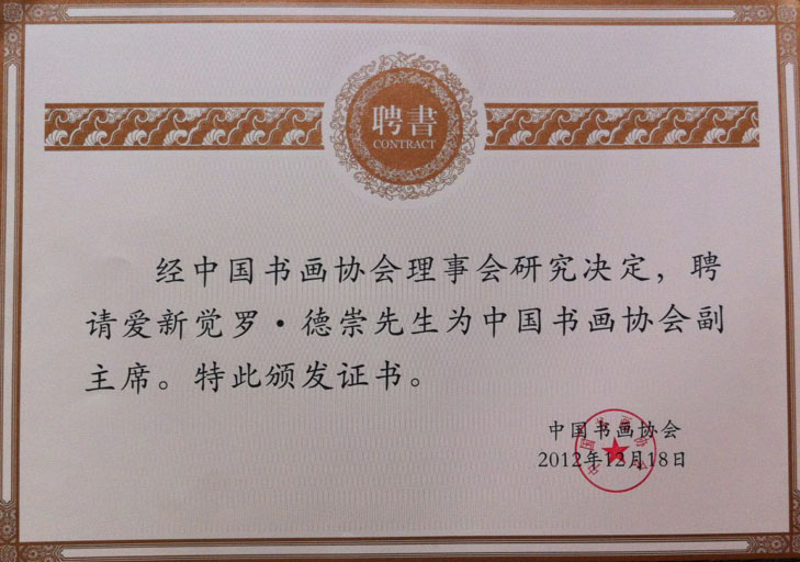 聘请爱新觉罗·德崇先生为中国书画协会副主席
