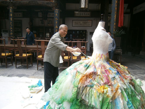崔自默博士在“默艺空间” 为歌唱家雷佳女士绘制特制的演出华服(2011年10月14日上午)
