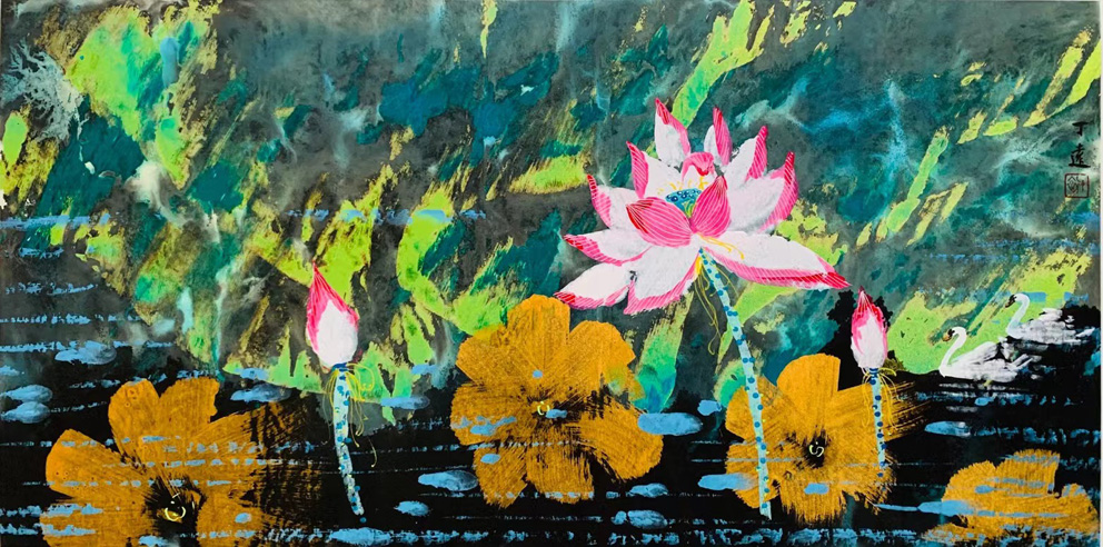 丁远:极光彩墨创始人、新印象派创始人。本科毕业 获 艺术学 学士学位,进修于清华大学美术学院。师承清华大学美术学院教授 乔十光先生(中国漆画之父) 、中央民族大学美术学院教授 李涵 先生(李苦禅大弟子、人民大会堂陈列顾问)、极光彩墨荷系列师从 黄永玉 先生(中央美术学院教授)。