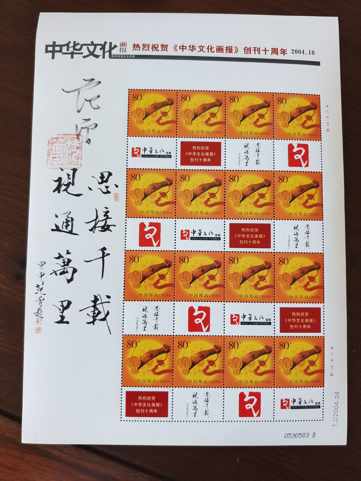 范曾先生为《中华文化画报》创刊十周年题赠“思接千载 视通万里”并题签纪念邮票