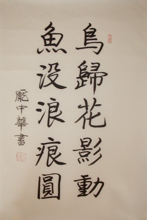 在“文革”喧闹的年代,中华在深山孤灯下,用娟秀的钢笔小楷写下的几十本读书笔记,和十七岁开始便不间断的清秀日记;更值得一提的是,如今成果累累的庞中华,依然保持当年深山地质队员的宁静心态,面对当前浮燥的闹市,拒绝了一切诱惑,每天读书写字,弹琴赋诗。只要观看他近年的书法创作,包括他用各种硬笔、毛笔临写的历代法帖,就知道勤奋和诚实才是成功者宝贵的品质。