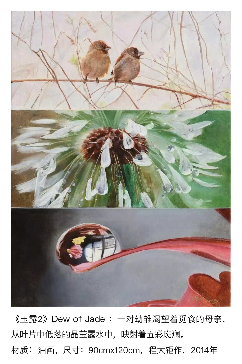 程大钜视觉艺术作品包括油画、国画、素描、水彩、水粉、雕塑、装置、书法、摄影、漫画等,作品发表在报刊与网络媒体,曾参加2012“艺术水立方”杯国际书画大展暨“2012(伦敦)奥林匹克美术大会·巡展”及2013卢浮宫卡鲁塞尔厅展览,获得的创意金奖。2018欧亚艺术联盟巴黎画展,2019瑞士日内瓦程大钜“诗意画派”作品展,2023年被艺术中国评为“中国艺术领军人物”,作品被中国国家博物馆、中国美术馆收藏。出版有《程大钜 不期而遇“思维画派”作品集》《2023全球华人杰出艺术家——程大钜》《21世纪有影响力画家个案研究》、《中国当代艺术大家-程大钜油画作品集》等。