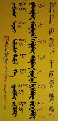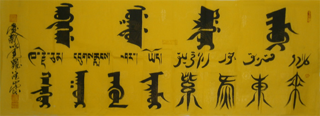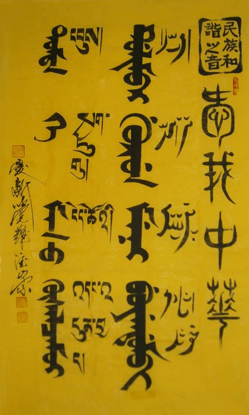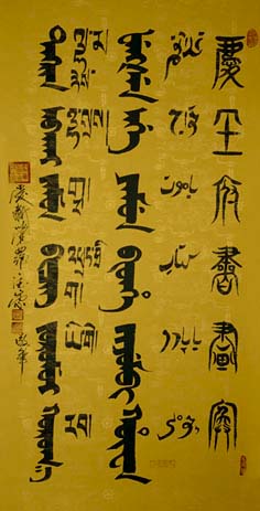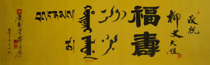 爱新觉罗·德崇 辈名:溥旻,清太祖努尔哈赤十一世孙。1945年生于承德,自幼受家庭传统熏陶,三岁进入承德维绵皇族私塾,在苦练八旗传统武功时更对满族文史、书法,汉语言文学情有独钟。经他半生的专研和潜心学习,其满汉合壁的书法作品在中国书法史上独树一帜,在国内外书画展上屡屡获奖并广被各界爱好者收藏。其创作的满文象形体作品《龙》、《剑》享有终身著作权;2006年国家版权局定其书法作品系列为《爱新觉罗·德崇满文字范》享有终身著作权。2003年被列入《当代满族名人录》;2004年被国家民委《中国民族》以〈民族之星〉专题宣传德崇的书法和事迹;2006年被告列入《当代满族人物风采》、《现代满族书画家传略》。现为国家民委《中国民族》英文版顾问;国家民委中国北方少数民族文化研究基地发展委员会主任;中国民族古文字研究会会员;中国书画协会常务理事;中国管理科学研究院特邀学术委员、研究员;沈阳师范大学马克思主义学院兼职教授、研究生导师;沈阳理工大学应用技术学院等客座教授;辽宁省社会科学界联合会《辽海论坛》讲座讲师;辽宁省满族文化资源与发展研究基地发展委员会主任;辽宁省中华文化促进会常务理事;辽宁省民俗学会副会长;辽宁省姓氏(家族)文化研究会会长;辽宁省民族饮食文化研究会秘书长;爱新觉罗•德崇在北京、辽宁、吉林、河北、安徽、陕西、云南等省、市、区、县政府及相关部门都受聘有若干社会职务;爱新觉罗•德崇还是辽宁太阳鸟广告有限公司,沈阳大清宝泉水饮品有限公司,沈阳颐养堂联合基因生物科技有限公司,辽宁省(东北)陕西同乡会、辽宁省陕西商会筹委员、陕西英才东北联络处的顾问,辽宁省安徽同乡会等29家企业、商会、社团和教育机构的文化总监、高级顾问或代言人等。