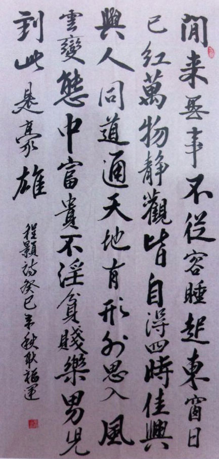 耿福运,男、汉族、生于1952年。自幼酷爱书画,高中文化,多年来临习欧、柳、颜、赵、二王作品现行程个人风格,多次参加全国、省、市书展获金奖五次、银奖十二次,现是太和书协会员、太和书画研究院研究员、市老年书协会员、中国书画院一级书画师、中国书画协会理事。联系电话:18356818739