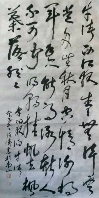 任涛先生自幼喜爱中国书画艺术。六岁随父亲学习书法,后随国家一级美术师李宝存先生学习国画和水彩画,随新疆美协会员乌鲁木齐美协副主席王晓敏老师学习花鸟,随新疆美协会员、中国书画院上海分院副院长刘也平先生学习新疆山水,并在新疆书法家协会培训班系统深造篆隶楷行草等五体书法,深得刘家新老师、李长中老师的亲授长习不辍,心揣手摩,书艺多有长进。认为并坚持辩证法贯穿于书法创作的全过程。对立统一规律是唯物辩证法的根本法则,是辩证法的核心和实质。宇宙间一切领域中的一切事物内部、一切事物之间(自然的和社会的、物质的和精神的)矛盾诸方面相互依存、相互排斥和相互斗争,是一切事物变化(量变到质变)、发展的力量源泉和根本动力,决定着一切事物的生命力,推动着一切事物内部、一切事物之间的变化和发展。对立统一法则具有普通性和绝对性,贯穿于一切事物变化、发展的全过程。因此,对立统一法则同样适用于书法创作和书法欣赏。并在取法上皆“有所为,有所不为”,力求在神、气、韵、法、意上达到和谐统一,以臻“中和之美”。