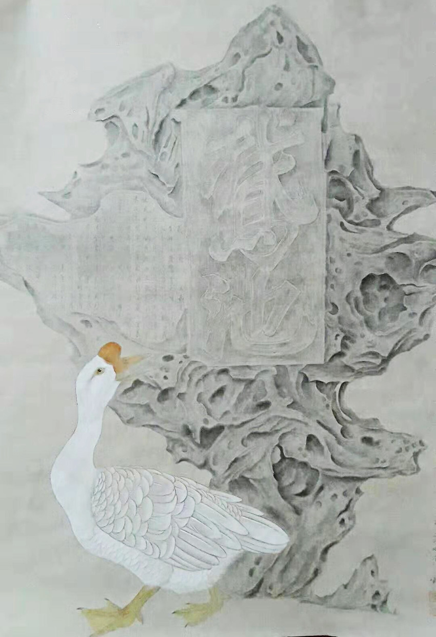 2019年其作品(爱鹅说)荣获第十届羲之杯当代书画家邀请赛一等奖