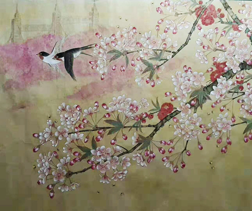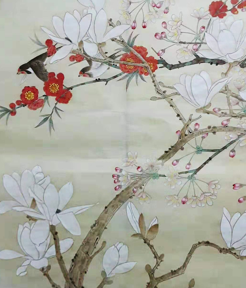 2019年其作品(锦绣春华)荣获第三届一带一路国礼杯全国杯书画大赛金奖