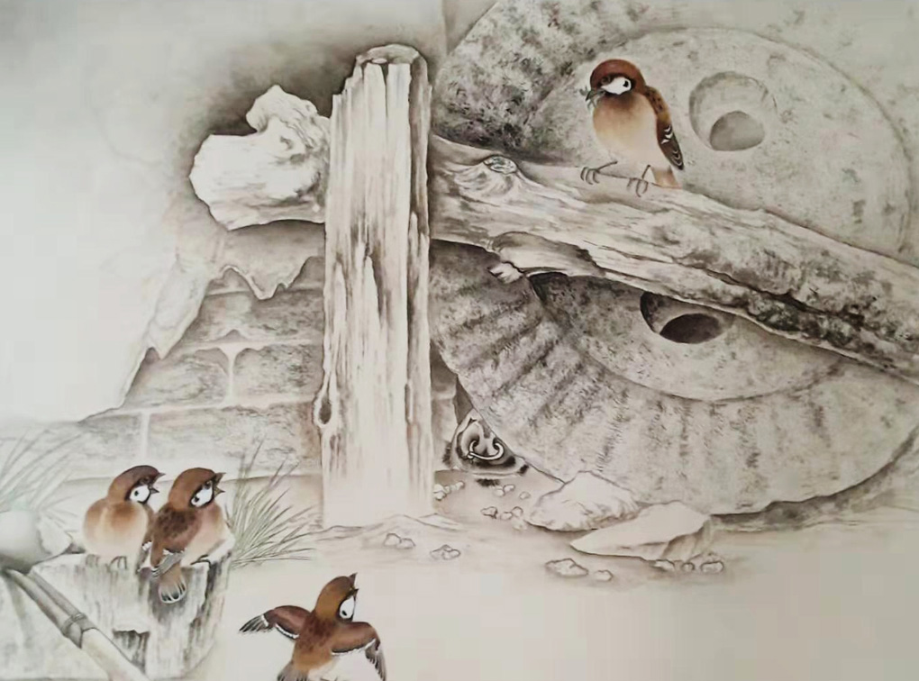 2006年其作品(内画花鸟)(拟唐人笔意五牛图)被母校永久收藏