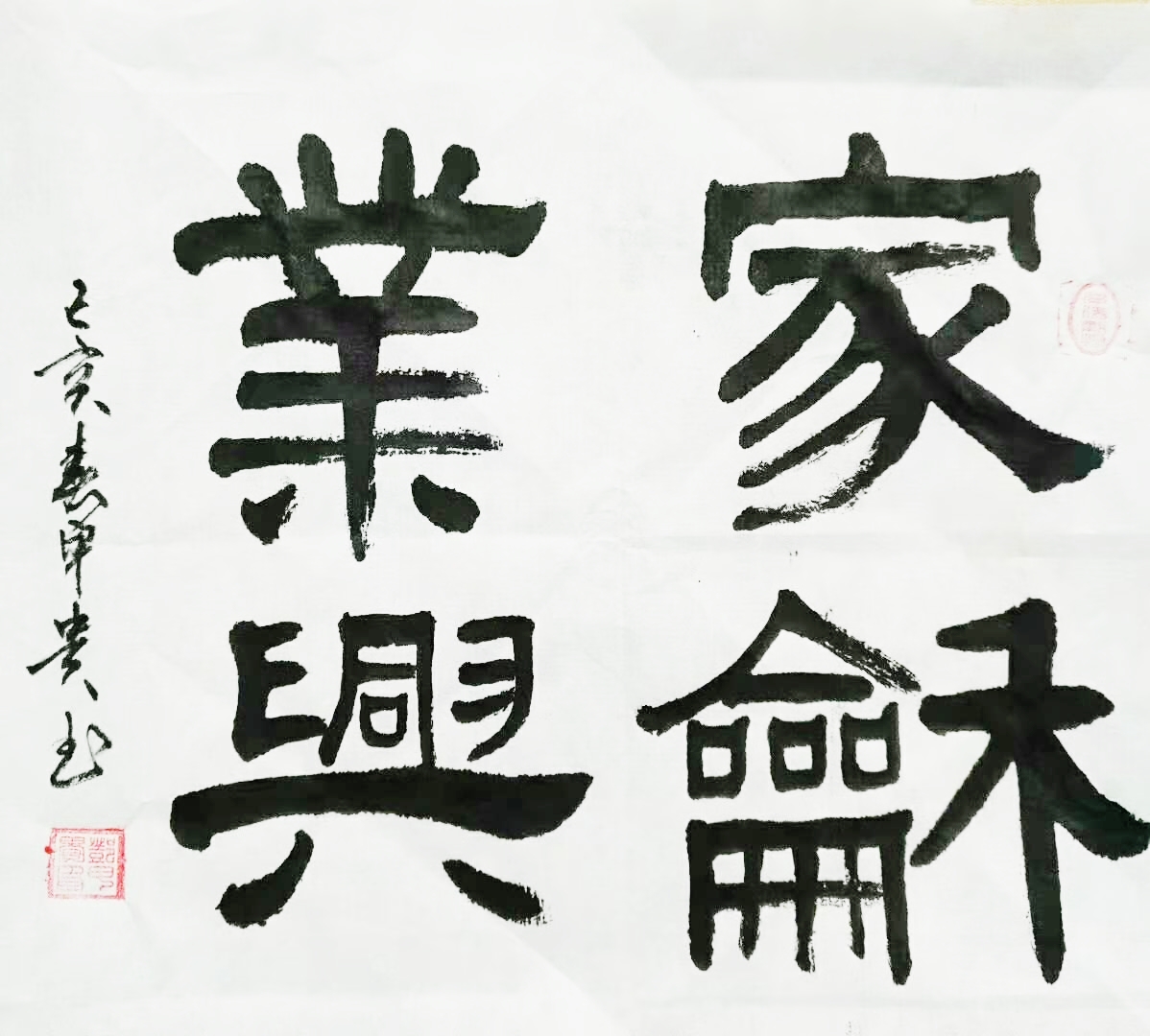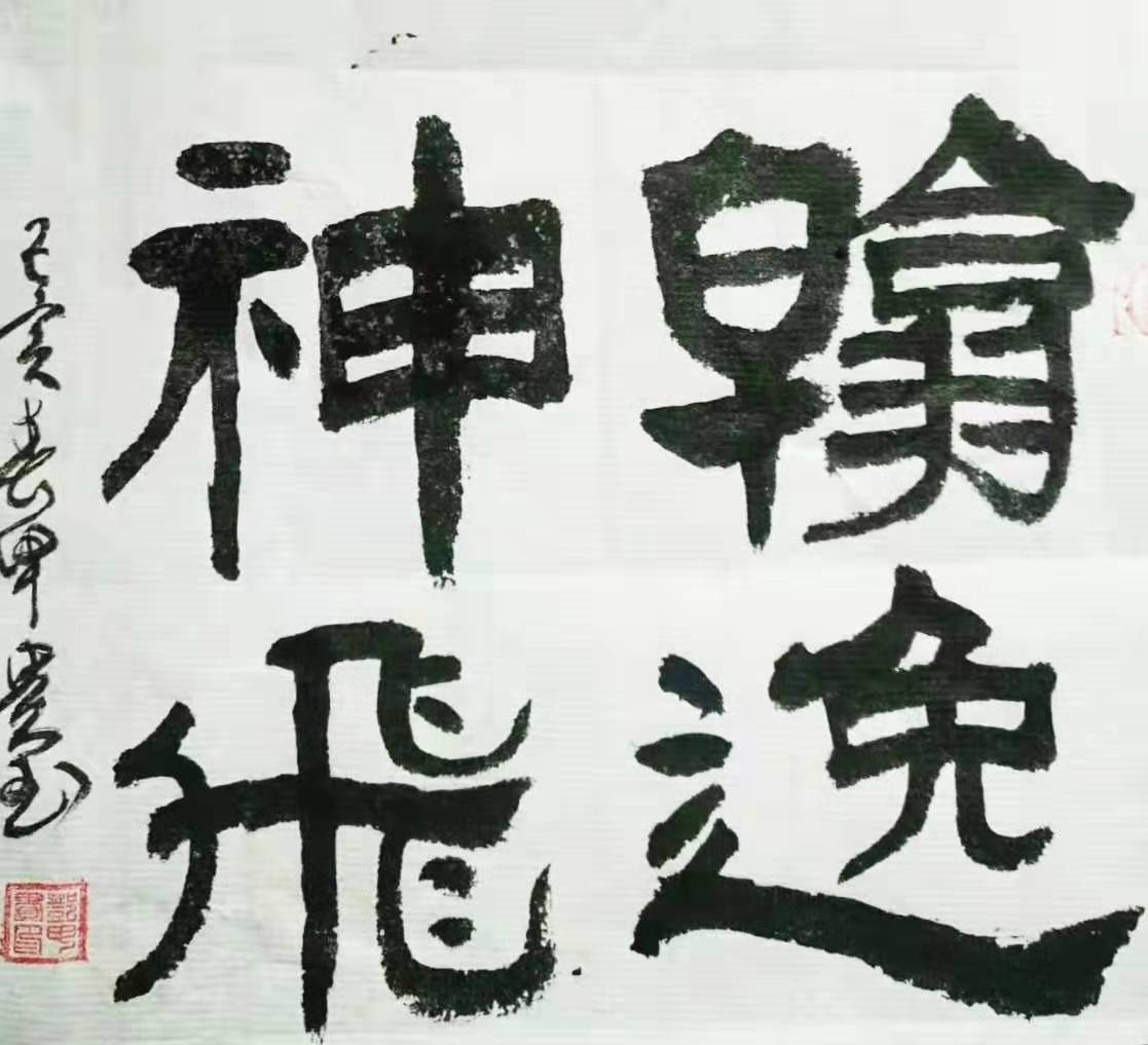 其书法得书法大家,书法理论家王根权老师,古汉隶书法大家房振荣先生的指点。