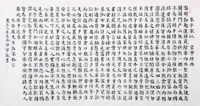 梁宁,一九七二年生,安徽省太和县人,毕业于安徽师院,中学高级教师。现为中国书画协会终身理事,北京图腾书画艺术研究院副秘书长!自幼受乡邻书法家云仰之影响,耳濡目染,喜爱上了书法,每年去云仰之家学写春联。乐此不疲。工作后尽管忙碌仍抽空练笔。师从书法家刘庆雪,临习颜体数载,后又学习魏晋小楷,尤爱褚遂良,钟繇,王羲之书法,笔耕不辍,每天临习书帖竟然成了一种习惯。热爱那种找寻先贤志士足迹的佳境,物我两忘,白居易诗曰"旷然忘所在",更喜南齐书法家王僧虔的"书之妙道,神采为上″。除了教书育人,将终生以书法为友,追寻"挥毫落纸如云烟″的更高境界。