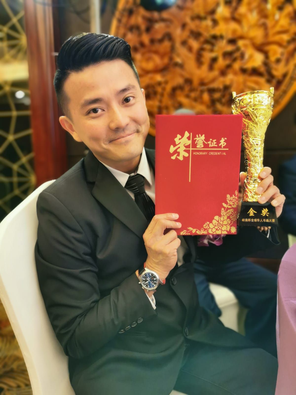 曾获得新加坡第38届陈之初博士美术《优秀奖》