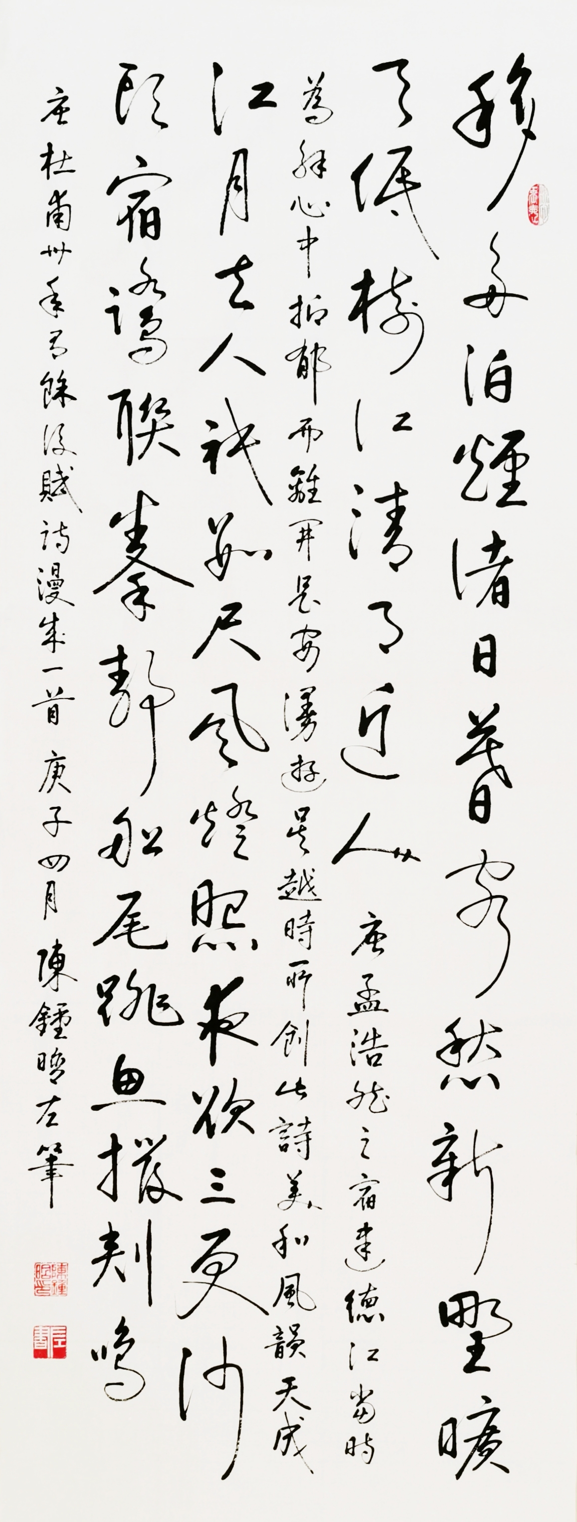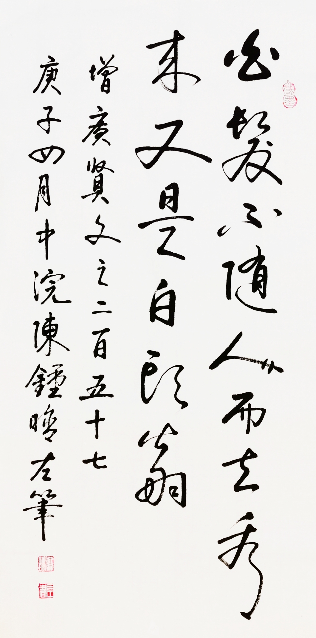 专用左手写行草书,参用了启公,王羲之,董其昌和余国郎老师的笔法风格与布局。个人喜欢写字时要求格局要干净利落、 字字随法和尽量中锋行笔。