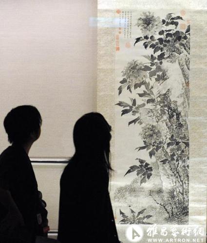 2010年12月31日 台北故宫推出历代花卉名品书画特展 12月31日,台北市民在花卉名品书画特展上欣赏《金廷标墨牡丹》。为庆祝2011年元旦,台湾台北故宫博物院推出《满庭芳——历代花卉名品》书画特展。第一档展期至3月25日,展出74件花卉绘画;第二档展期为3月29日至5月31日,将展出16件花卉书画作品。