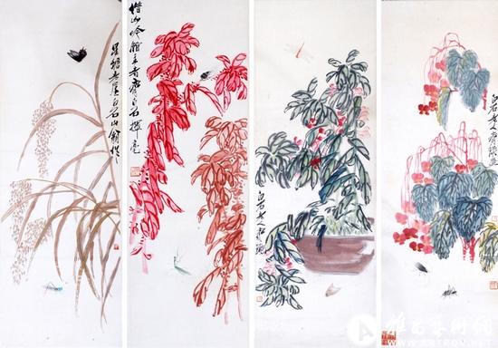 天津文交所网站上贴出的“齐白石《花卉草虫》四条屏”。