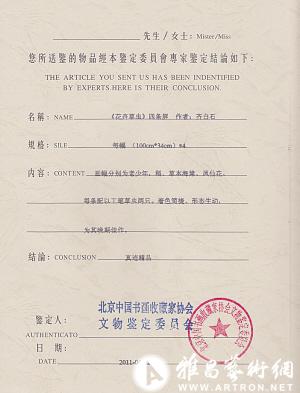 天津中睿信投资有限公司在网上贴出的一张鉴定结果,时间为2011年6月12日。