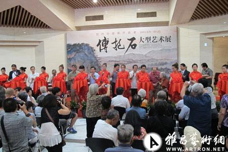 傅抱石,作为20世纪中国传统绘画变革的代表人物,一方面是闻名中外的国画大师,篆刻、书法等传统艺术功底亦佳;一方面是著名的美术史论家而著述等身。他的国画作品题材多样,技法丰富,创作内容与时俱进,创作情感极为强烈;他的史论研究,造诣精深、严谨宽博,博古论今而重点突出,傅抱石以艺术家的激情和学者的严谨,为20世纪现代中国画的开拓做出了卓越贡献。2011年9月6日,“现代中国画开拓者——傅抱石大型艺术展”在北京炎黄艺术馆隆重开幕,何毅亭、冯远、刘大为、潘公凯、郑慧文、何炬星、邹佩珠、常沙娜以及傅抱石之子傅二石等领导、艺术家、教授参加了展览开幕式。