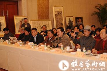 杨晓阳强调说,画院要为国家民族不断做出重大贡献。他认为,解放以后,画家多了,画得好的少了。这很大程度上是“极左”思潮的影响,不给画家创作自由,艺术家往往离创作题材太近,艺术上推敲不够。我们画“六大项目”的这种题材,都是从远古走来的。要用长时间来磨合它,最后把它真正画成艺术品。不能画成宣传画和看图识字。我相信这10年创作中,稿子出来以后,在艺术上要提炼、拔高,是要花很大力气的。现在创作画很多,画得好的很少。这次最后落下来就这六张画,也不见得很长。你就是画100米我也有画室,我也有人才,也有经费。说到经费,国家画院所用的经费国家给的仅是五分之一,去年五个大展,只有一个是国家给的钱。现在的画室,东面的楼还没盖,但是我们三个基地已经把画家创作需要全部满足了。这都是我们利用社会力量,向社会回报得来的。我们用人是专聘结合,我们用钱和硬件建设也是国家拨款和市场自筹相结合,这说明我们为社会服务得比较好。最终这六大题材的创作包括现在不断抢救性收藏,都是在为国家积累不断增值的固定资产。