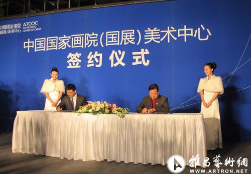 国展美术中心总裁杨春桥在签约仪式现场介绍:“中国国家画院(国展)美术中心位于北京中国国际展览中心,总面积达10万平方米,分二期建成,是集创作中心、经纪中心、国际美术馆、国内美术馆、世界艺博会、交易中心、拍卖中心、传媒中心、服务中心、营销中心、集团客户中心、俱乐部、艺术基金于一体的大型艺术产业中心。预计,每年交易额将超过百亿元。”