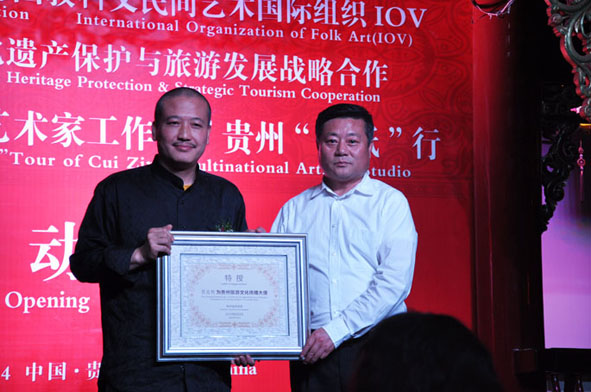 2012年6月4日,贵州省旅游局与联合国教科文民间艺术组织IOV“贵州非物质文化遗产保护与旅游发展战略合作”,暨“崔自默跨国艺术家工作室”贵州“默纸”行启动仪式在贵州省博物馆正式启动,贵州省旅游局傅迎春局长出席启动仪式,贵州省旅游局聘授中国书画协会主席崔自默先生为贵州旅游文化传播大使,颁发证书。启动仪式结束后,傅迎春局长陪同“崔自默跨国艺术家工作室”一行参观贵州省博物馆。