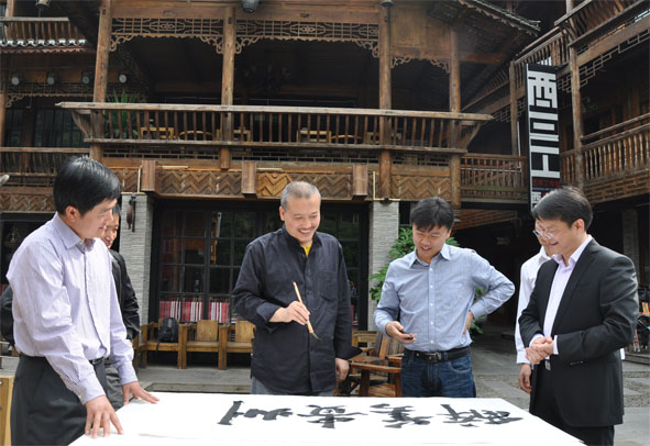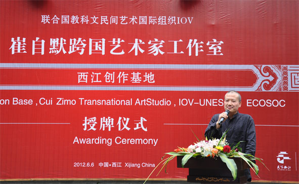 中国书画协会主席崔自默博士作为中国当代知名的艺术家,在今年3月27日荣获联合国教科文民间艺术组织IOV颁发的"文化艺术特别成就奖",是世界范围内首位获得这一奖项的艺术家,同时也获得"IOV中国形象大使"的荣誉称号。6月3日,崔先生与IOV全球副主席、中国区主席陈平女士在北京共同发起并成立了"崔自默跨国艺术家工作室",近日,即赶到黔东南苗族侗族自治州雷山县西江千户苗寨成立了该工作室的第一个创作基地。