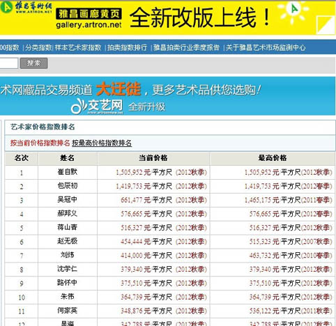 更多了解请点击雅昌艺术网:http://index.artron.net/new03.php?sort=020102000000&nd=%E5%BD%93%E4%BB%A3&str=%E5%BD%93%E4%BB%A3%E5%9B%BD%E7%94%BB
