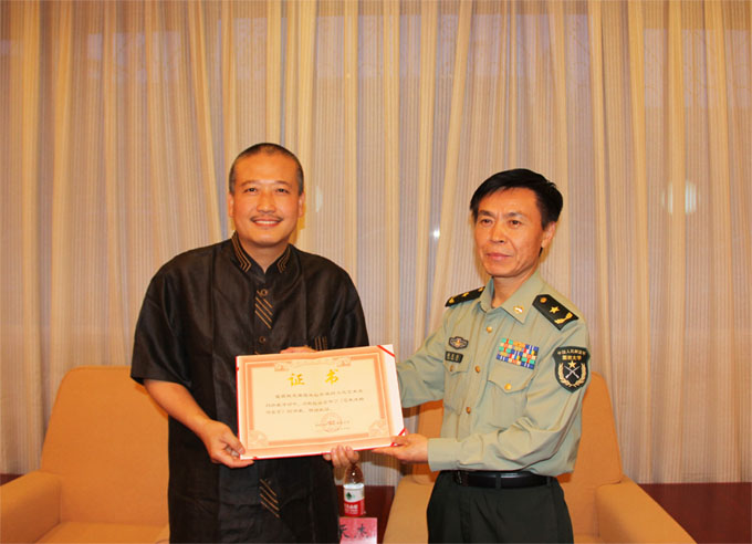 段天杰少将向崔自默博士颁发荣誉证书
