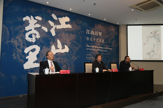 2014年1月22日上午,“江山万里——张大千艺术展”在中国美术馆举行了开幕和媒体见面会。中国美术馆馆长范迪安、中国美术馆研究与策划部主任张晴、长流美术馆馆长黄承志等,以及两岸美术界的同仁一起参加了展览新闻发布会。范迪安馆长在新闻发布会现场介绍展览时表示,中国美术馆作为一个重要的公共文化平台,每年春节期间都要组织迎春贺岁大展来满足社会各界朋友的审美需求,北京每年过年都会有大量的民俗文化和民间艺术展现给观众,在这种情况下中国美术馆更要考虑如何多角度的为公众提供文化大餐,所以中国美术馆每年坚持为公众营造新颖、高雅的视觉艺术氛围。张大千艺术展之所以能在中国美术馆举办,是长流美术馆2013年在台北举办了张大千艺术展之后,中国美术馆与台湾长流美术馆通过交流、携手合作,精心策划使展览能在春节期间与观众见面。