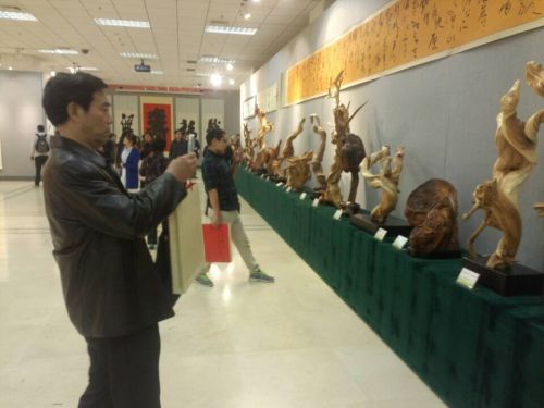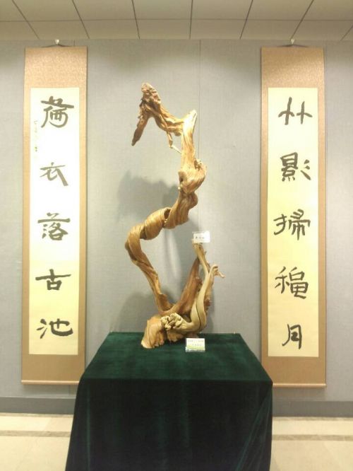 2014年10月18日,“郑培奎天美奇木暨书画艺术作品展”在中国人民革命军事博物馆博兴大厦开幕。此次画展将持续到本月22日。这也是本周来,“日照元素”第二次亮相北京。 本次展览共展出郑培奎先生根艺作品60件,书画作品120件,是郑培奎先生一生根艺书画艺术成功的集中反映。郑培奎先生1941年出生于山东日照,自幼习书法,孜孜以求,后又恩受孙伯翔、刘一闻、杨兆晖、陈玉龙、刘文华、崔胜辉等名师悉心指教,60余年技艺大进。 他独创出书画兼融的福、寿等字,得到权威人士的充分肯定,并在现场展出。最近又创出“瘦金草”书体。该书体系从铁线篆、瘦金体和怀素自叙帖中提取书法元素,博采众长,和而不同,以锥划沙的笔法、折钗股的使转,植根传统,力求新奇,线条多力多筋。 根艺,是郑培奎先生平生一大爱好,在这个领域取得了骄人的成绩。根艺也是他的艺术出发点,几十年来,他于自然山水间跋涉,对树木有着深刻的观察与体验,在腐朽与废弃中发现美的规律,化腐朽为神奇,赋予根的第二次生命。他独创了环保版的“天美奇木”艺术这一全新的艺术门类,这门艺术共分“朽木造型”和“枯木逢春”两大系列,其中“朽木造型”系列是以环保为前提,只取地上部分,无需挖土爆石破坏山体,区别于传统意义的根艺,成功解决了原有树根艺术破坏环境的痼疾,并可消除枯干木材带来的火灾隐患。“枯木逢春”系列是指即将枯死的树木成为盆景后,经过悉心养护而重焕青春。 本次展览由山东省文联、日照市委宣传部主办,山东省美术家协会、日照市文联承办,齐白石艺术研究会、中华将军书画院协办。 10月16日至19日,沂蒙画派晋京展亦在此举办。这个画派是以地域特征命名,涵盖了包括日照、临沂等沂蒙山区广袤地域,汇集了来自以上地区的百余位画家。主题展示的是莒文化、沂蒙魂、颂齐鲁。
