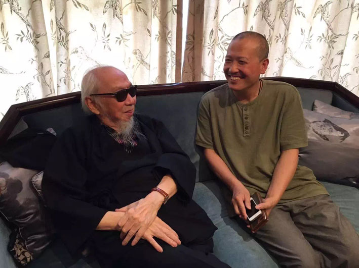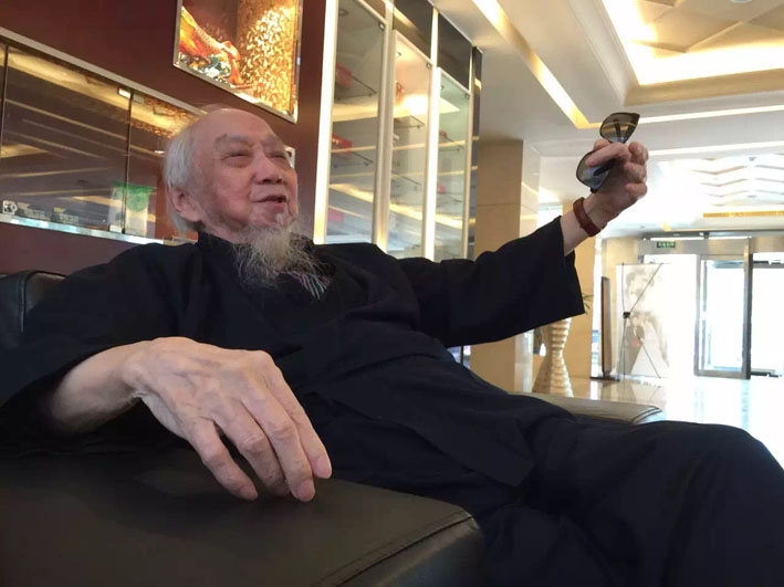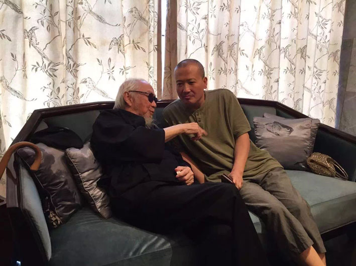 崔自默博士2015年中秋佳节,代表中国书画协会看望并陪同中国书画协会名誉主席106岁的文怀沙翁一起共度中秋。