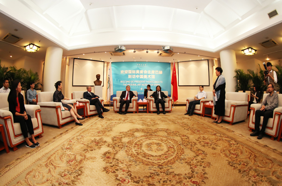 2017年8月27日上午,国际奥委会主席托马斯·巴赫一行专程来访中国美术馆,与中国美术馆馆长吴为山亲切会面。国际奥委会主席托马斯·巴赫,国际奥委会副主席于再清,国际奥委会委员李玲蔚、委员杨扬、名誉委员霍震霆,中国美术馆馆长吴为山,中国美术馆党委书记张士军,中国美术馆副馆长安远远、副馆长张晴等嘉宾与新闻媒体共同出席了本次活动。活动由安远远副馆长主持。
