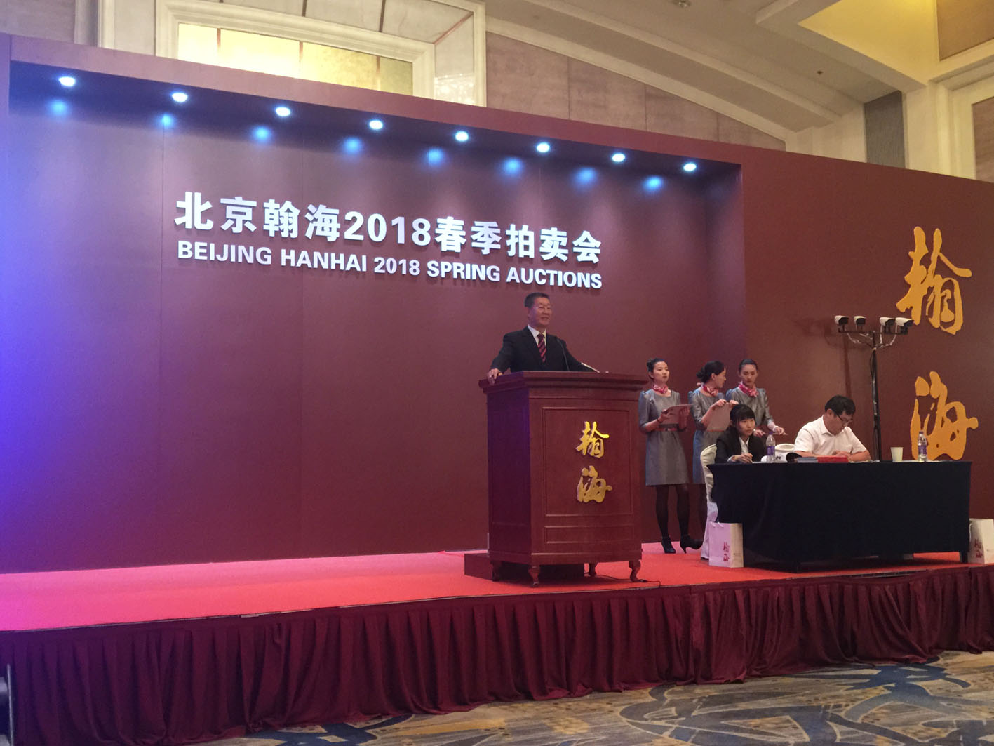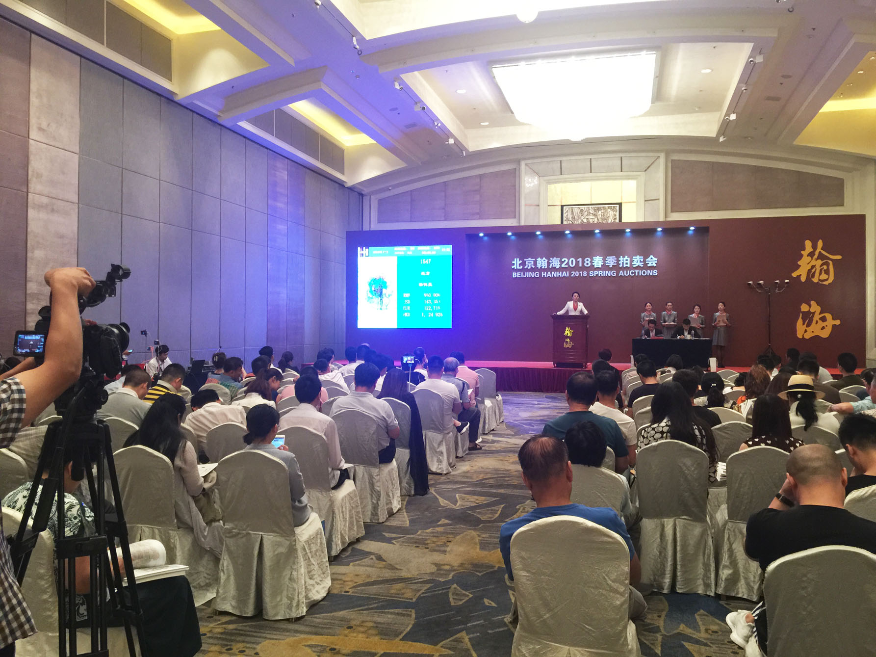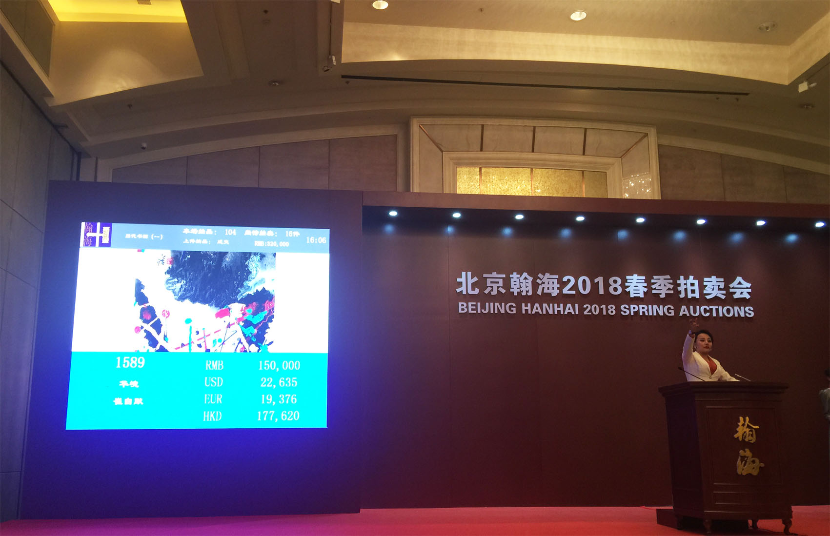 “北京翰海2018春季拍卖会”现场大屏幕展示崔自默作品《仁爱》