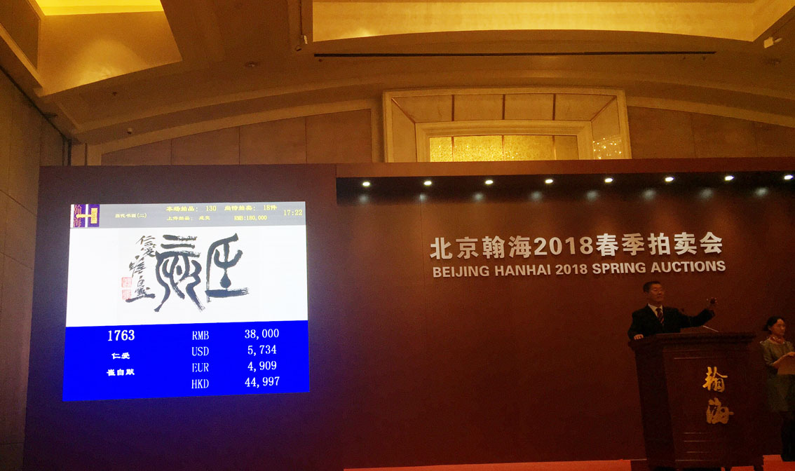 北京翰海2018春季拍卖会现场拍卖崔自默书法作品《仁爱》