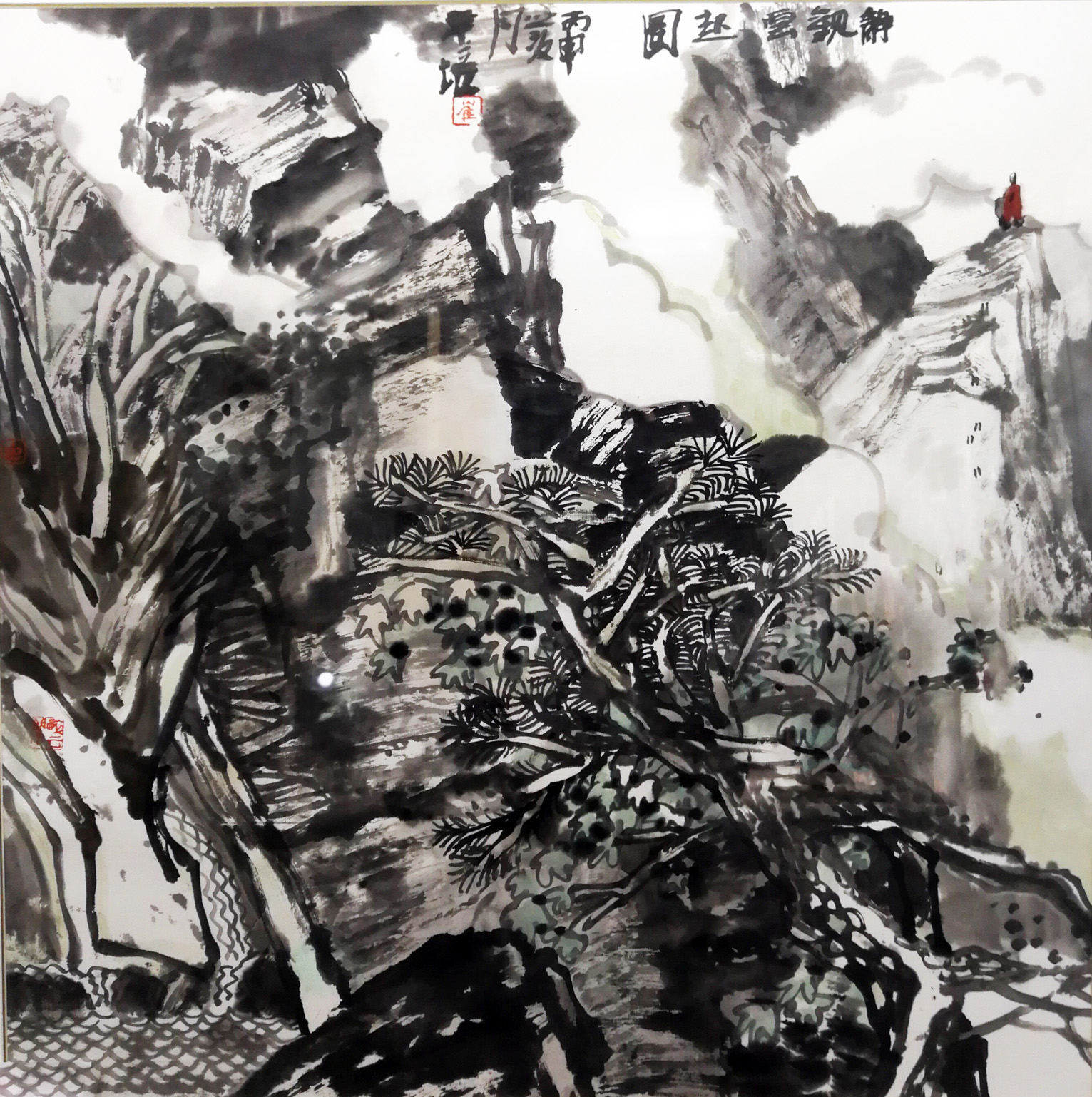 还有最终实现的主题有多高深的隐喻,哪怕潜意识有无限涵盖的包容,甚至于吞吐天地之志,均离不开笔墨意趣与线性造形、整体布陈与局部安排、情思宣泄与气韵开张表达,每一张作品所感受到达到的艺术境界是要在不断寻找中慢慢窥视到的,在没有开启这扇大门之前一切美丽的词汇与欲望都不等于你见到了那方净土,更代替不了心中的神圣。