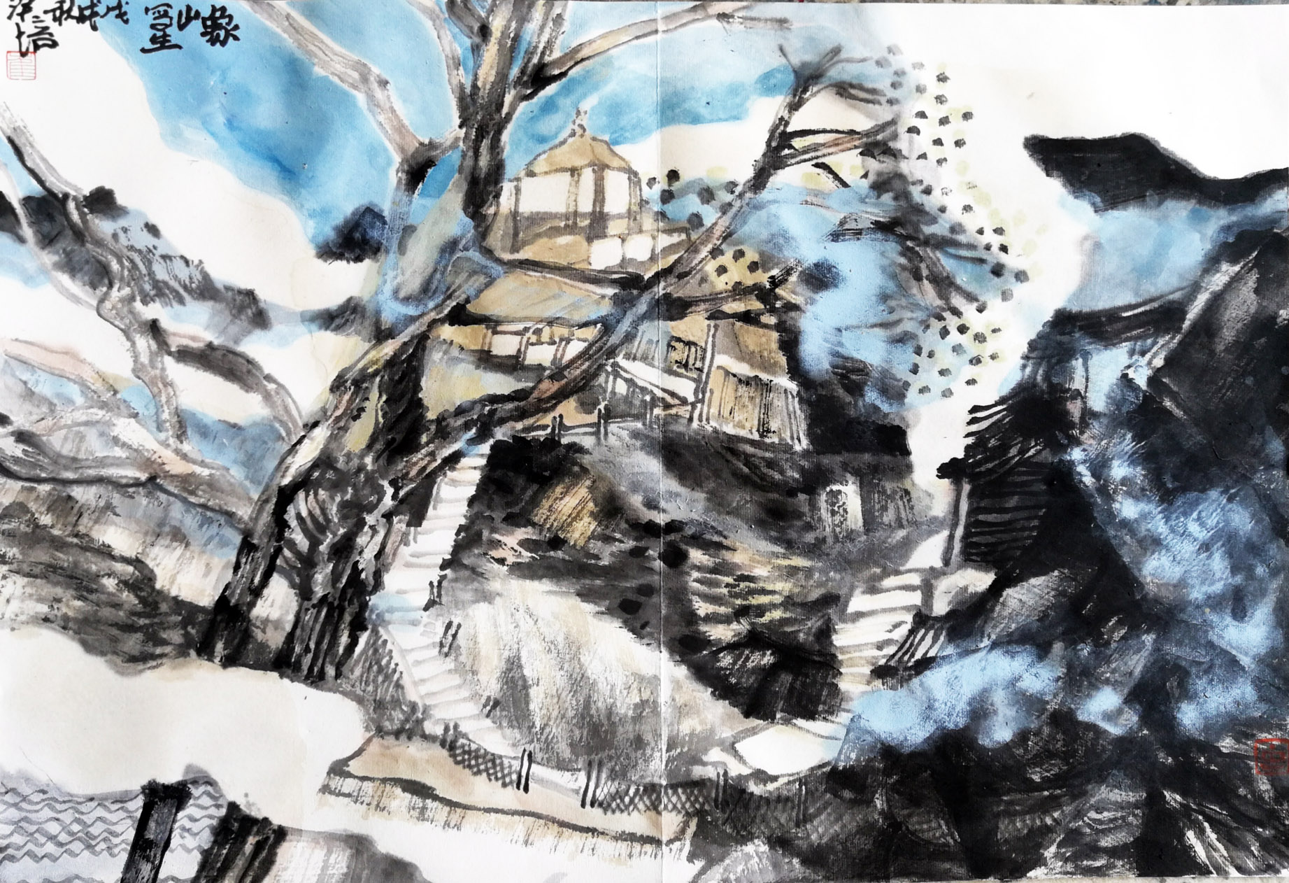 而写生是涵盖了前者所有认识的升华,是以具体的表现手法来验证采风中的感受,“纸上得来终觉浅绝知此事要躬行”。