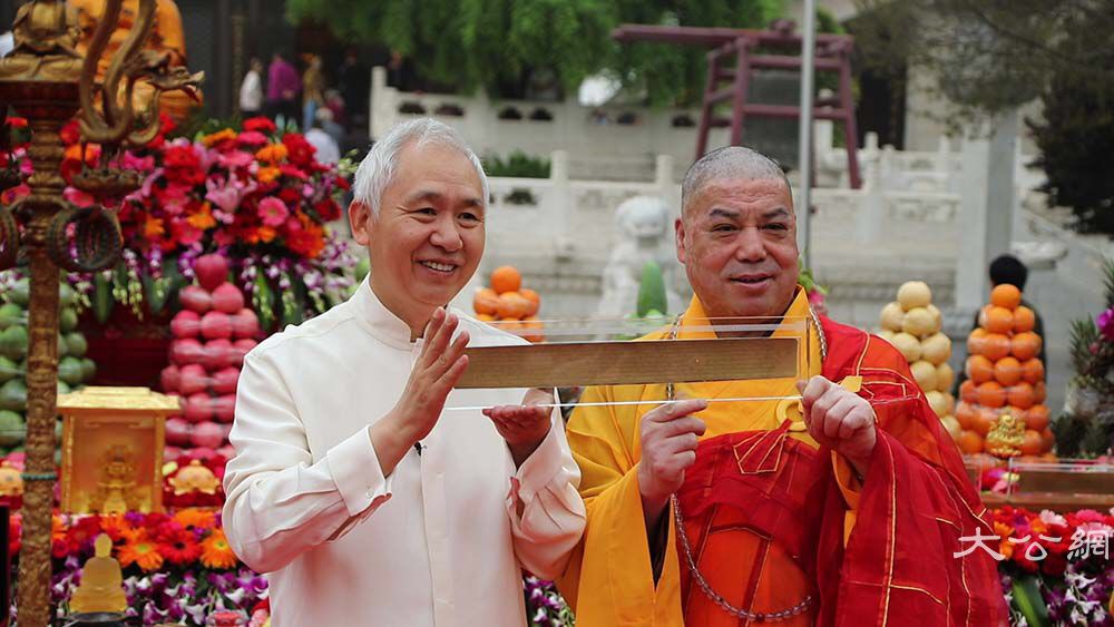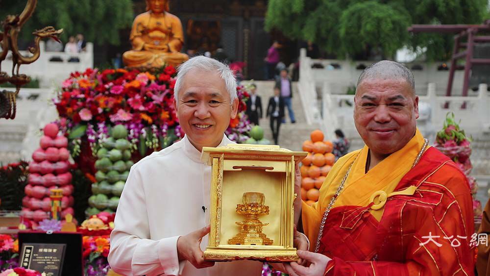 今天白十源先生将珍藏的佛宝与法宝赠给大慈恩寺,陪同增勤大和尚走弘法利生路,做饶益有情事。