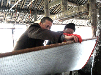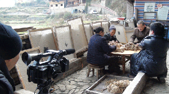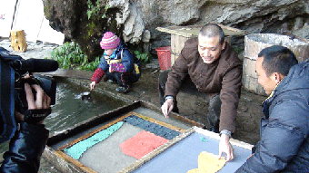 崔自默向造纸手工艺人学艺