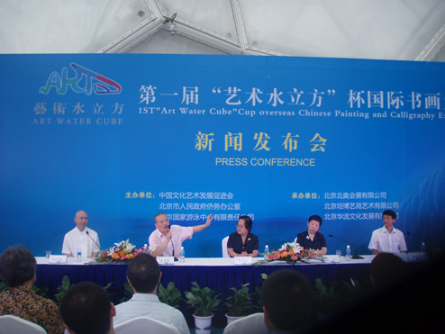 崔自默博士出席第一届“艺术水立方”杯国际书画大展新闻发布会并发言