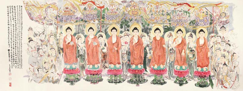 国画《药师七佛》 338×91cm 约27.5平尺 成交额:450万元人民币