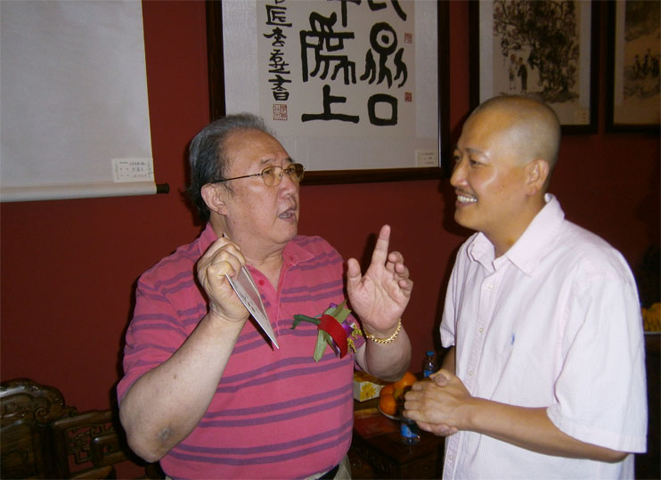崔自默博士与老朋友傅二石在展会现场不期而遇