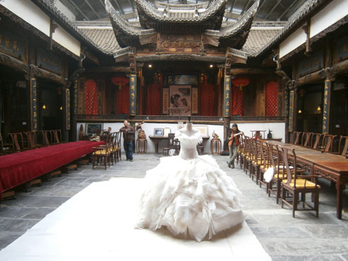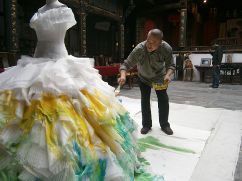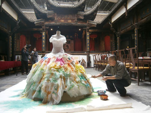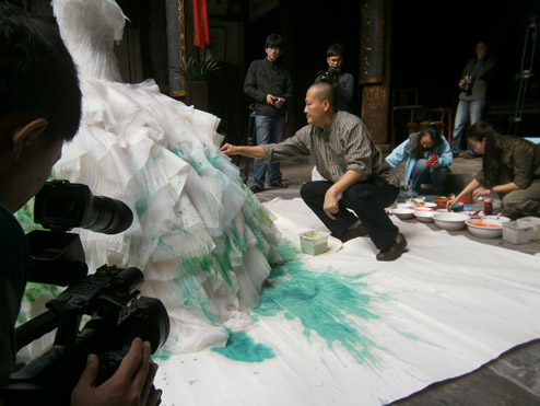 崔自默博士在“默艺空间” 为歌唱家雷佳女士绘制特制的演出华服(2011年10月14日上午)