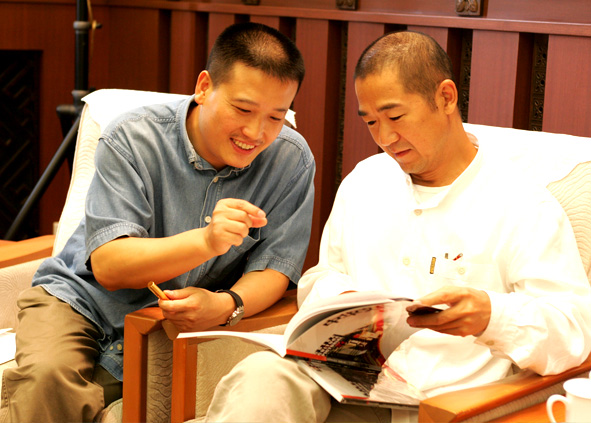 中国书画协会主席崔自默与好友著名演员张国立先生
